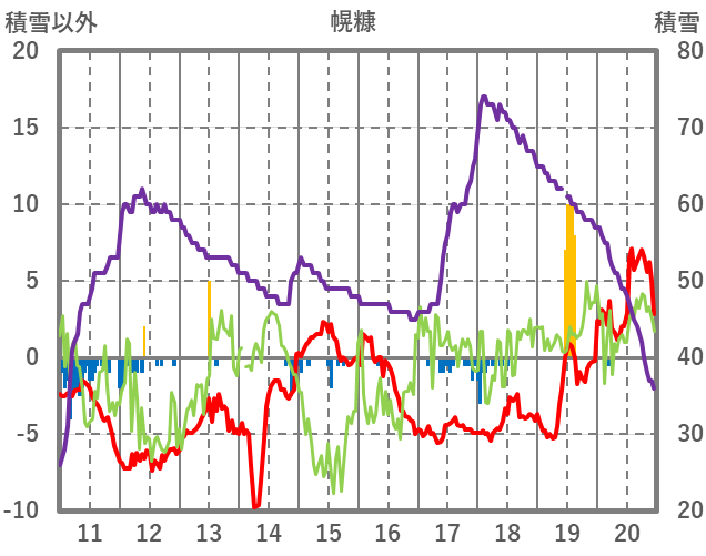 | 日 | 時 | 気温 | 降水 | 風向/風速 | 日照 | 積雪 | 降雪 |