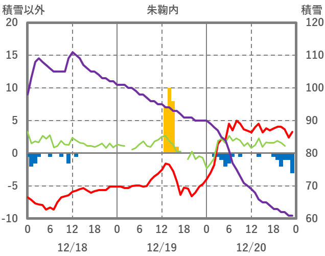| 日 | 時 | 気温 | 降水 | 風向/風速 | 日照 | 積雪 | 降雪 |