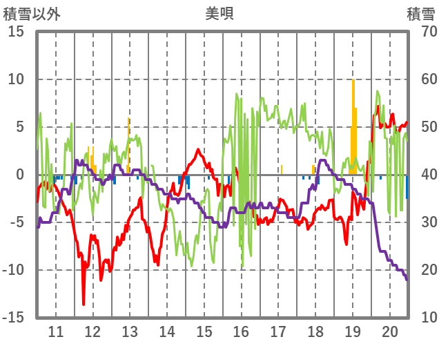 | 日 | 時 | 気温 | 降水 | 風向/風速 | 日照 | 積雪 | 降雪 |