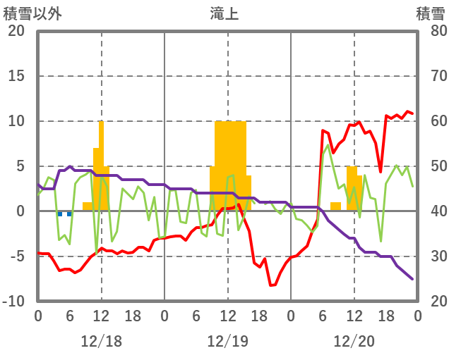 | 日 | 時 | 気温 | 降水 | 風向/風速 | 日照 | 積雪 | 降雪 |