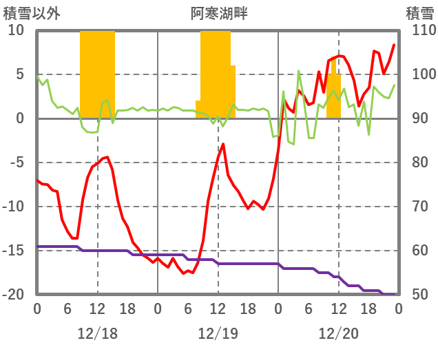 | 日 | 時 | 気温 | 降水 | 風向/風速 | 日照 | 積雪 | 降雪 |