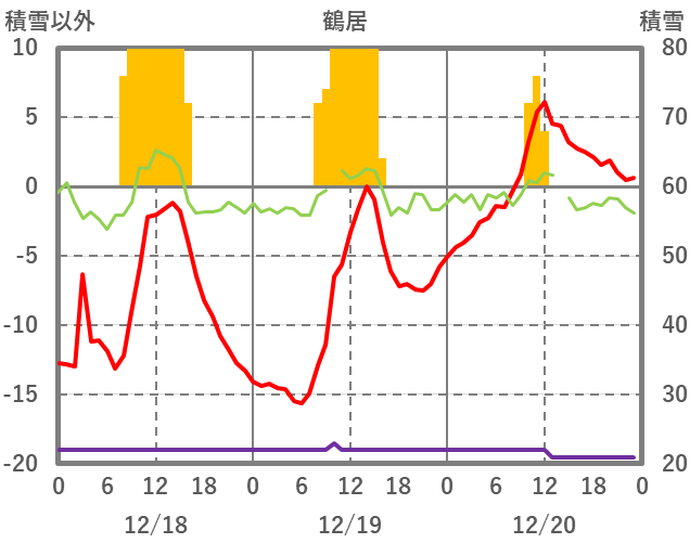 | 日 | 時 | 気温 | 降水 | 風向/風速 | 日照 | 積雪 | 降雪 |