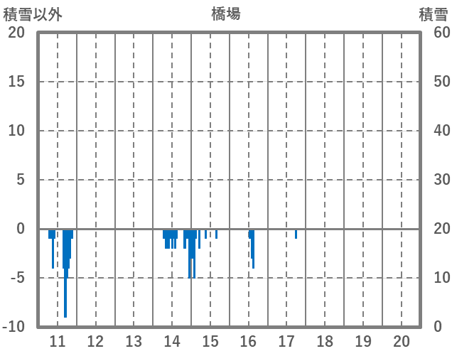 | 日 | 時 | 気温 | 降水 | 風向/風速 | 日照 | 積雪 | 降雪 |
