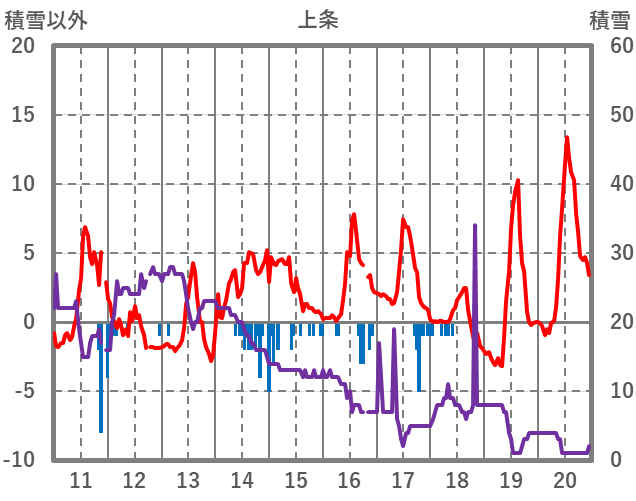 | 日 | 時 | 気温 | 降水 | 風向/風速 | 日照 | 積雪 | 降雪 |