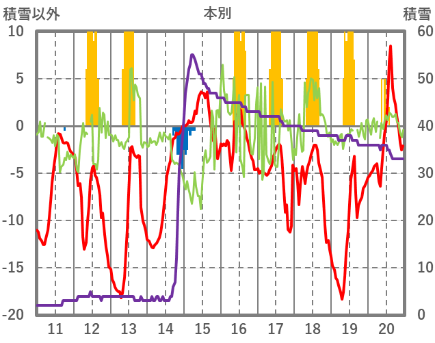 | 日 | 時 | 気温 | 降水 | 風向/風速 | 日照 | 積雪 | 降雪 |