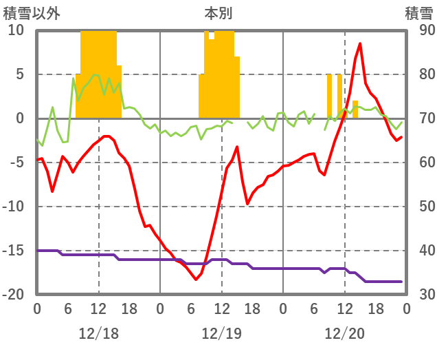 | 日 | 時 | 気温 | 降水 | 風向/風速 | 日照 | 積雪 | 降雪 |