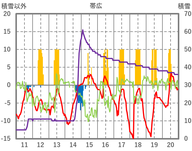 | 日 | 時 | 気温 | 降水 | 風向/風速 | 日照 | 積雪 | 降雪 |