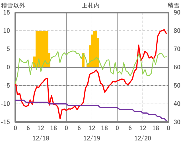| 日 | 時 | 気温 | 降水 | 風向/風速 | 日照 | 積雪 | 降雪 |