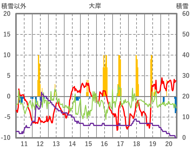 | 日 | 時 | 気温 | 降水 | 風向/風速 | 日照 | 積雪 | 降雪 |