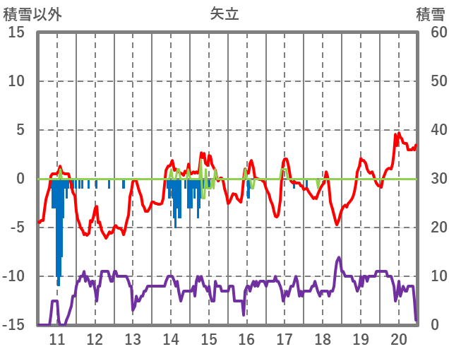| 日 | 時 | 気温 | 降水 | 風向/風速 | 日照 | 積雪 | 降雪 |