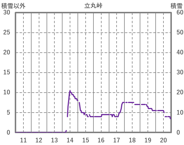 | 日 | 時 | 気温 | 降水 | 風向/風速 | 日照 | 積雪 | 降雪 |