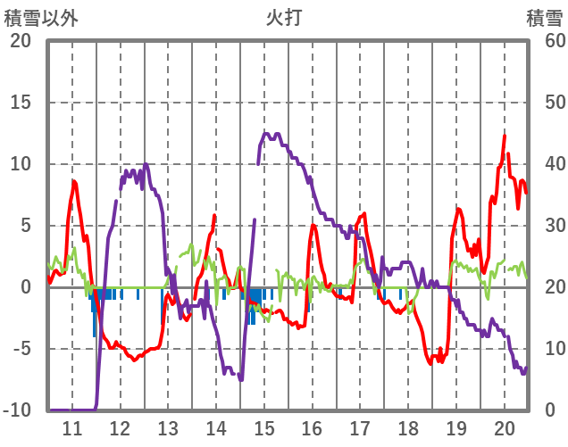 | 日 | 時 | 気温 | 降水 | 風向/風速 | 日照 | 積雪 | 降雪 |