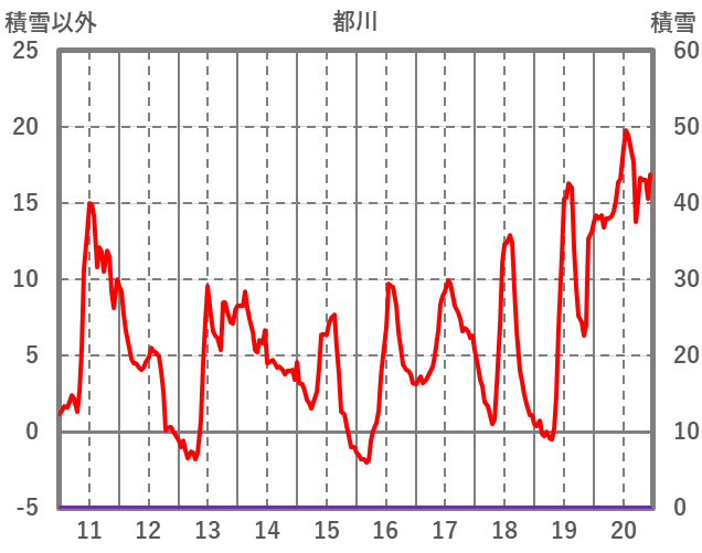 | 日 | 時 | 気温 | 降水 | 風向/風速 | 日照 | 積雪 | 降雪 |