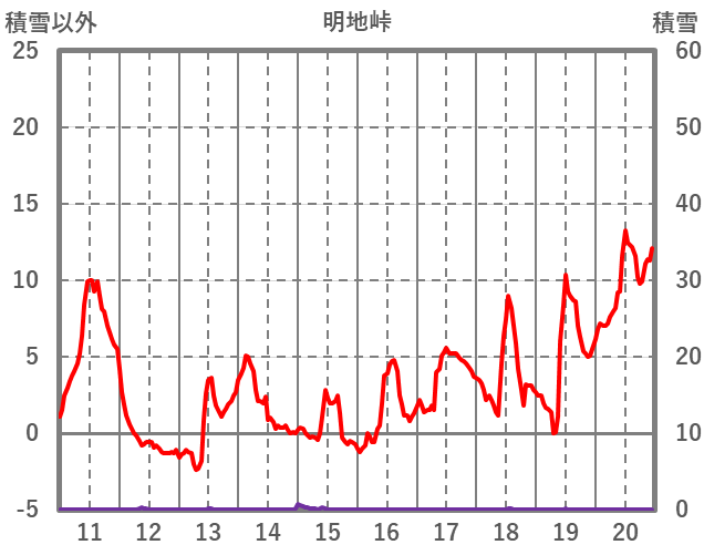 | 日 | 時 | 気温 | 降水 | 風向/風速 | 日照 | 積雪 | 降雪 |
