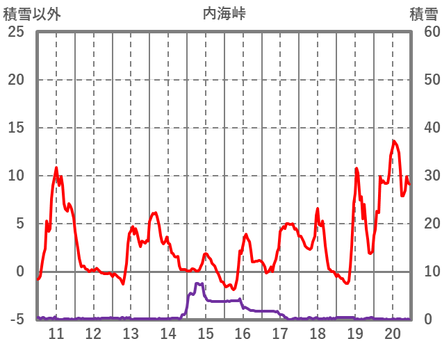 | 日 | 時 | 気温 | 降水 | 風向/風速 | 日照 | 積雪 | 降雪 |