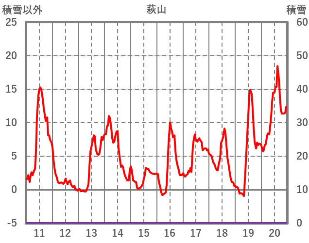 | 日 | 時 | 気温 | 降水 | 風向/風速 | 日照 | 積雪 | 降雪 |
