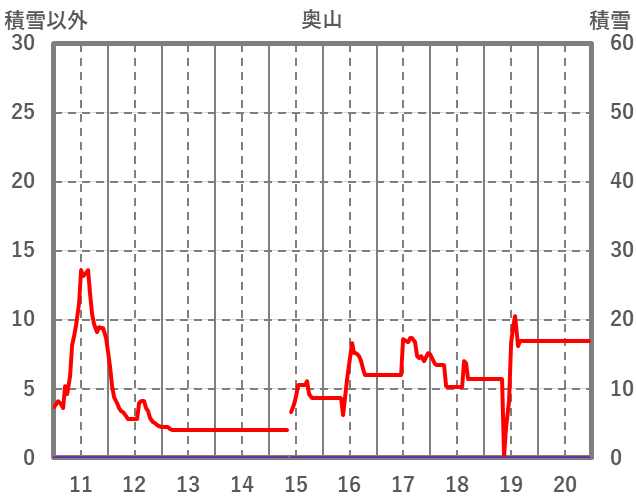 | 日 | 時 | 気温 | 降水 | 風向/風速 | 日照 | 積雪 | 降雪 |