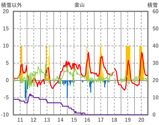 | 日 | 時 | 気温 | 降水 | 風向/風速 | 日照 | 積雪 | 降雪 |