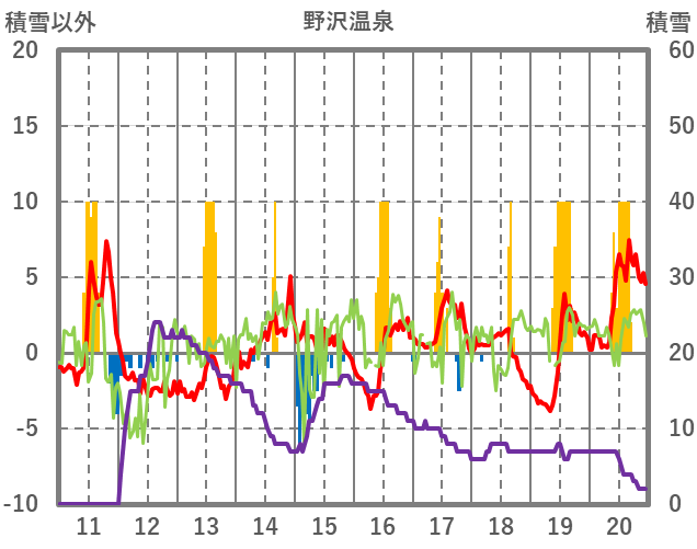 | 日 | 時 | 気温 | 降水 | 風向/風速 | 日照 | 積雪 | 降雪 |