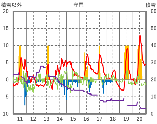 | 日 | 時 | 気温 | 降水 | 風向/風速 | 日照 | 積雪 | 降雪 |