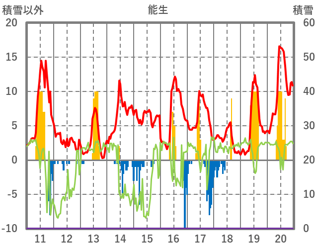 | 日 | 時 | 気温 | 降水 | 風向/風速 | 日照 | 積雪 | 降雪 |