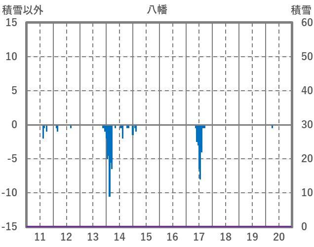 | 日 | 時 | 気温 | 降水 | 風向/風速 | 日照 | 積雪 | 降雪 |