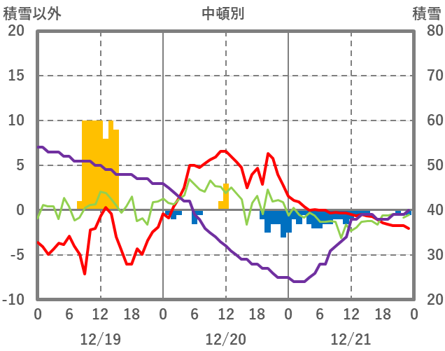 | 日 | 時 | 気温 | 降水 | 風向/風速 | 日照 | 積雪 | 降雪 |