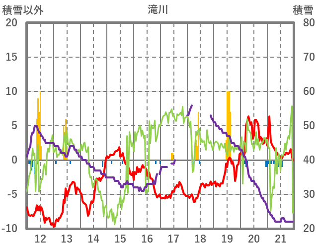 | 日 | 時 | 気温 | 降水 | 風向/風速 | 日照 | 積雪 | 降雪 |