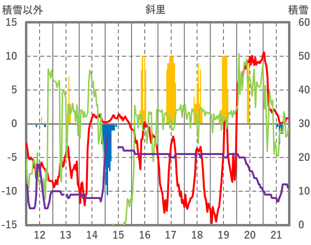 | 日 | 時 | 気温 | 降水 | 風向/風速 | 日照 | 積雪 | 降雪 |