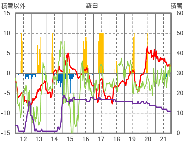 | 日 | 時 | 気温 | 降水 | 風向/風速 | 日照 | 積雪 | 降雪 |