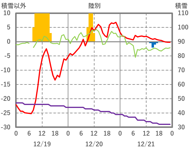 | 日 | 時 | 気温 | 降水 | 風向/風速 | 日照 | 積雪 | 降雪 |
