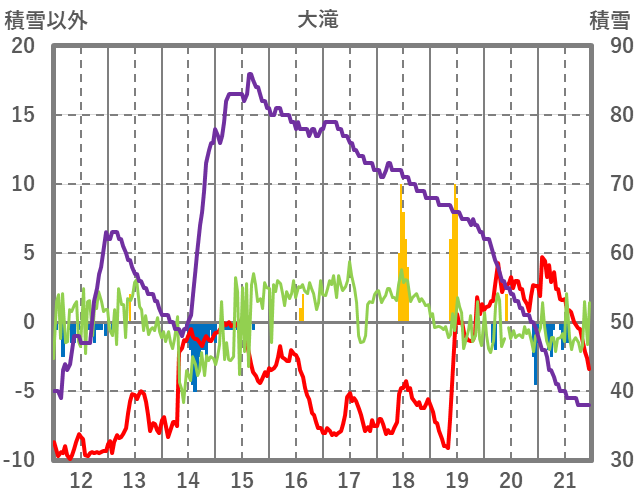 | 日 | 時 | 気温 | 降水 | 風向/風速 | 日照 | 積雪 | 降雪 |