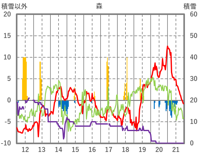 | 日 | 時 | 気温 | 降水 | 風向/風速 | 日照 | 積雪 | 降雪 |