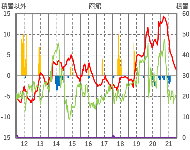| 日 | 時 | 気温 | 降水 | 風向/風速 | 日照 | 積雪 | 降雪 |