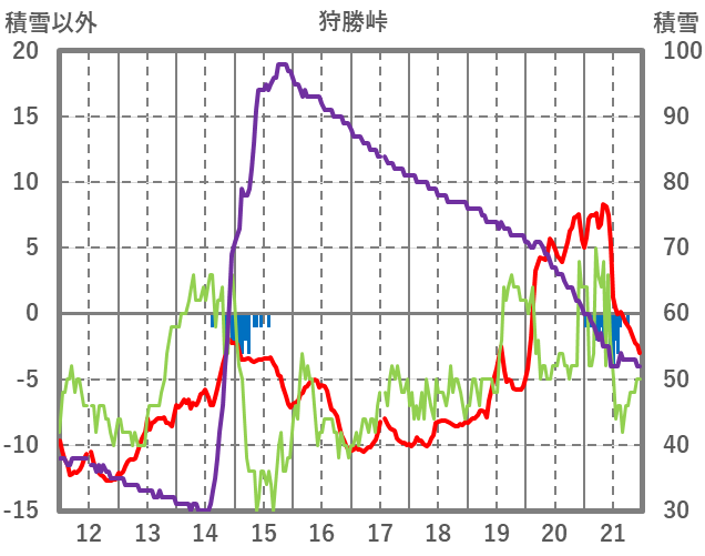 | 日 | 時 | 気温 | 降水 | 風向/風速 | 日照 | 積雪 | 降雪 |