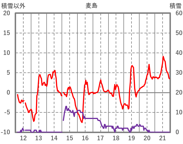 | 日 | 時 | 気温 | 降水 | 風向/風速 | 日照 | 積雪 | 降雪 |