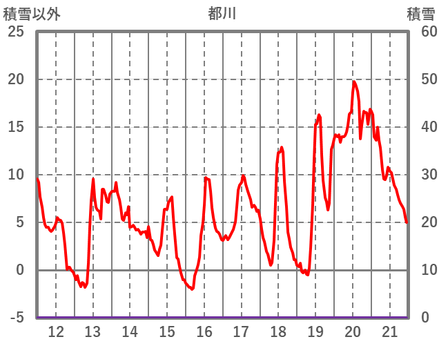 | 日 | 時 | 気温 | 降水 | 風向/風速 | 日照 | 積雪 | 降雪 |
