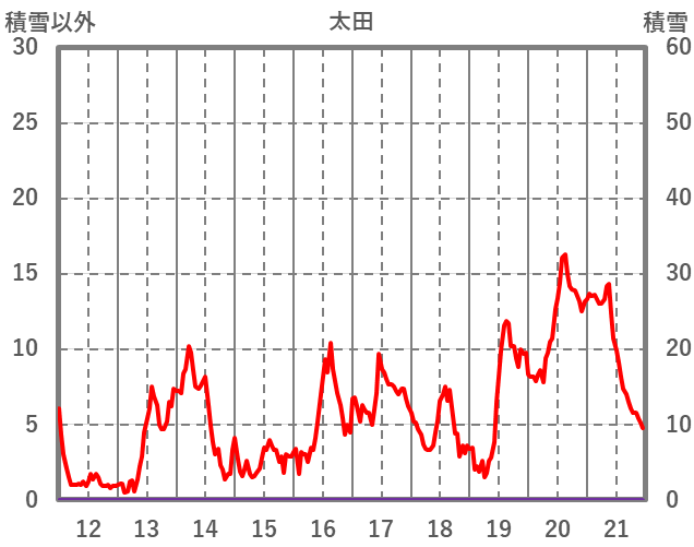 | 日 | 時 | 気温 | 降水 | 風向/風速 | 日照 | 積雪 | 降雪 |