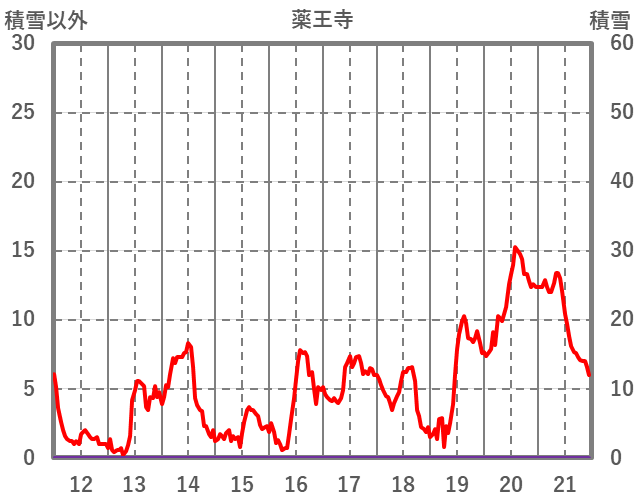 | 日 | 時 | 気温 | 降水 | 風向/風速 | 日照 | 積雪 | 降雪 |