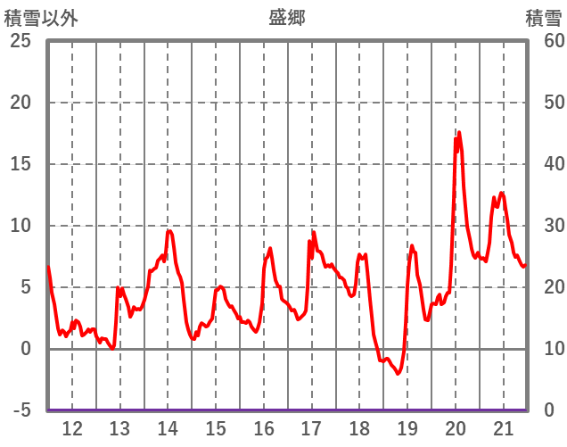 | 日 | 時 | 気温 | 降水 | 風向/風速 | 日照 | 積雪 | 降雪 |
