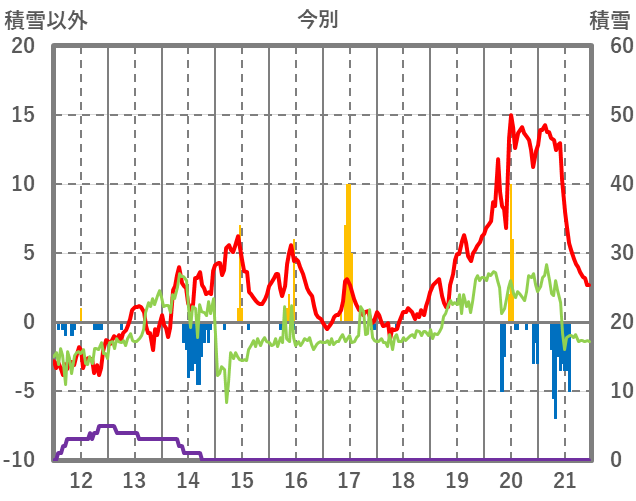 | 日 | 時 | 気温 | 降水 | 風向/風速 | 日照 | 積雪 | 降雪 |
