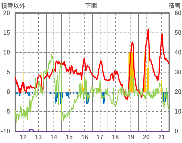| 日 | 時 | 気温 | 降水 | 風向/風速 | 日照 | 積雪 | 降雪 |