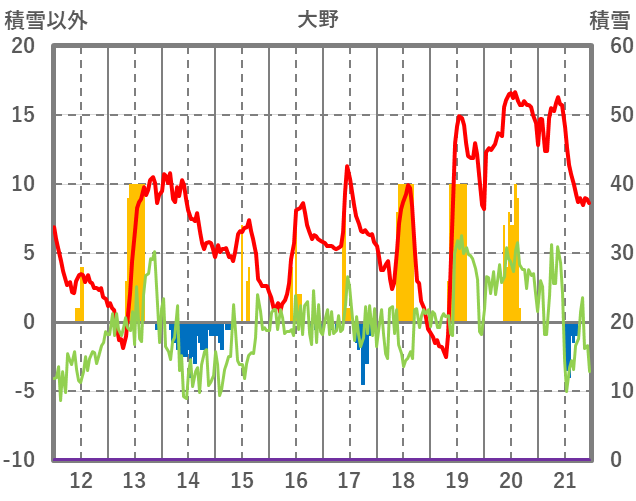 | 日 | 時 | 気温 | 降水 | 風向/風速 | 日照 | 積雪 | 降雪 |