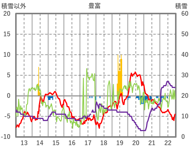 | 日 | 時 | 気温 | 降水 | 風向/風速 | 日照 | 積雪 | 降雪 |