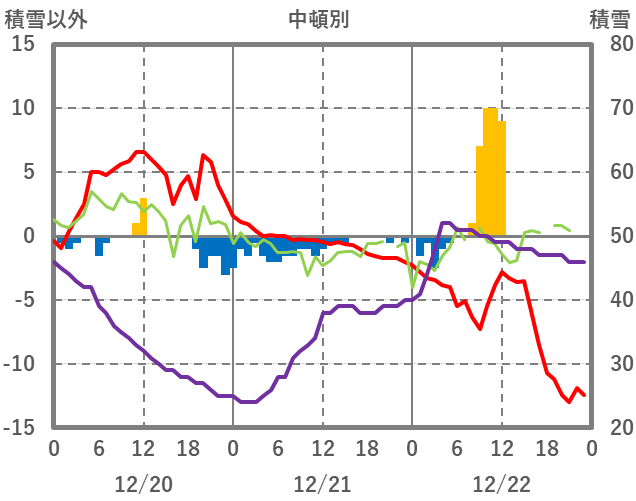 | 日 | 時 | 気温 | 降水 | 風向/風速 | 日照 | 積雪 | 降雪 |