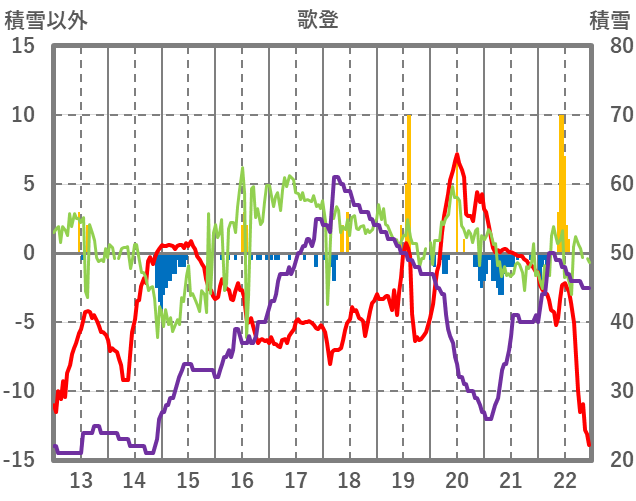 | 日 | 時 | 気温 | 降水 | 風向/風速 | 日照 | 積雪 | 降雪 |