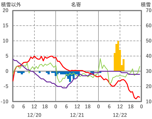 | 日 | 時 | 気温 | 降水 | 風向/風速 | 日照 | 積雪 | 降雪 |