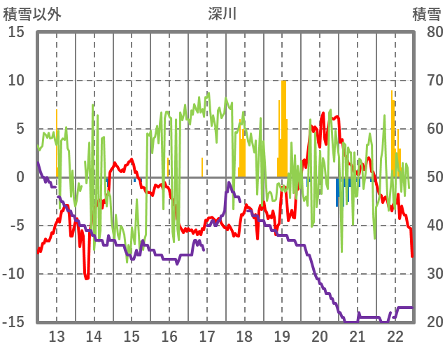 | 日 | 時 | 気温 | 降水 | 風向/風速 | 日照 | 積雪 | 降雪 |