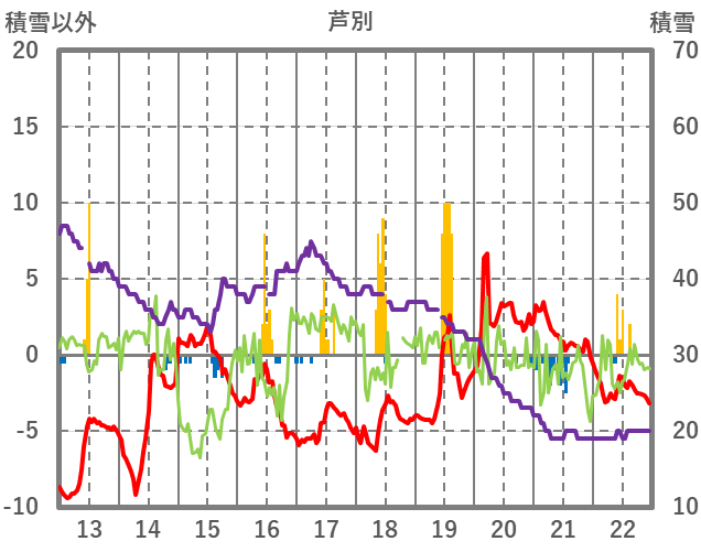 | 日 | 時 | 気温 | 降水 | 風向/風速 | 日照 | 積雪 | 降雪 |