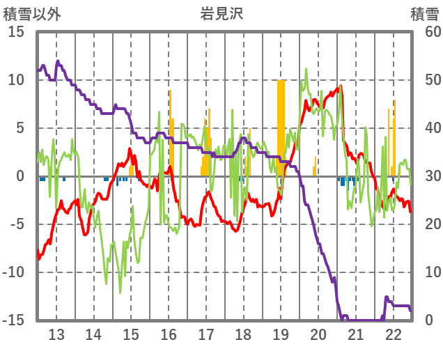 | 日 | 時 | 気温 | 降水 | 風向/風速 | 日照 | 積雪 | 降雪 |
